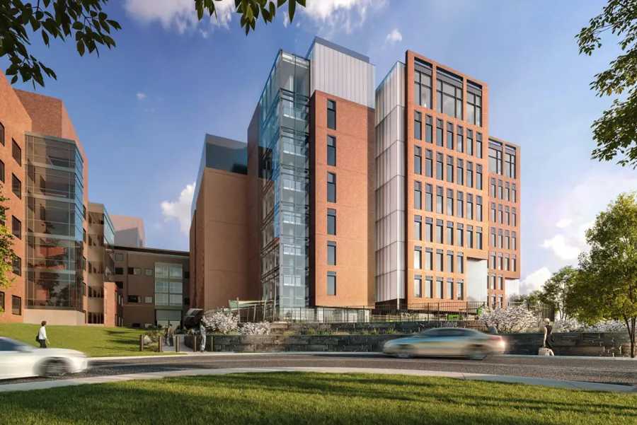 Designed by HOK, the building meets NIH’s challenging requirements: it harmoniously blends with existing red-brick structures, connects directly to the current hospital for functional synergy, and avoids obstructing the main hospital building. Its design integrates architecture, engineering, experience design, interior design, landscape design, and sustainable solutions, ensuring both aesthetic coherence and operational efficiency.